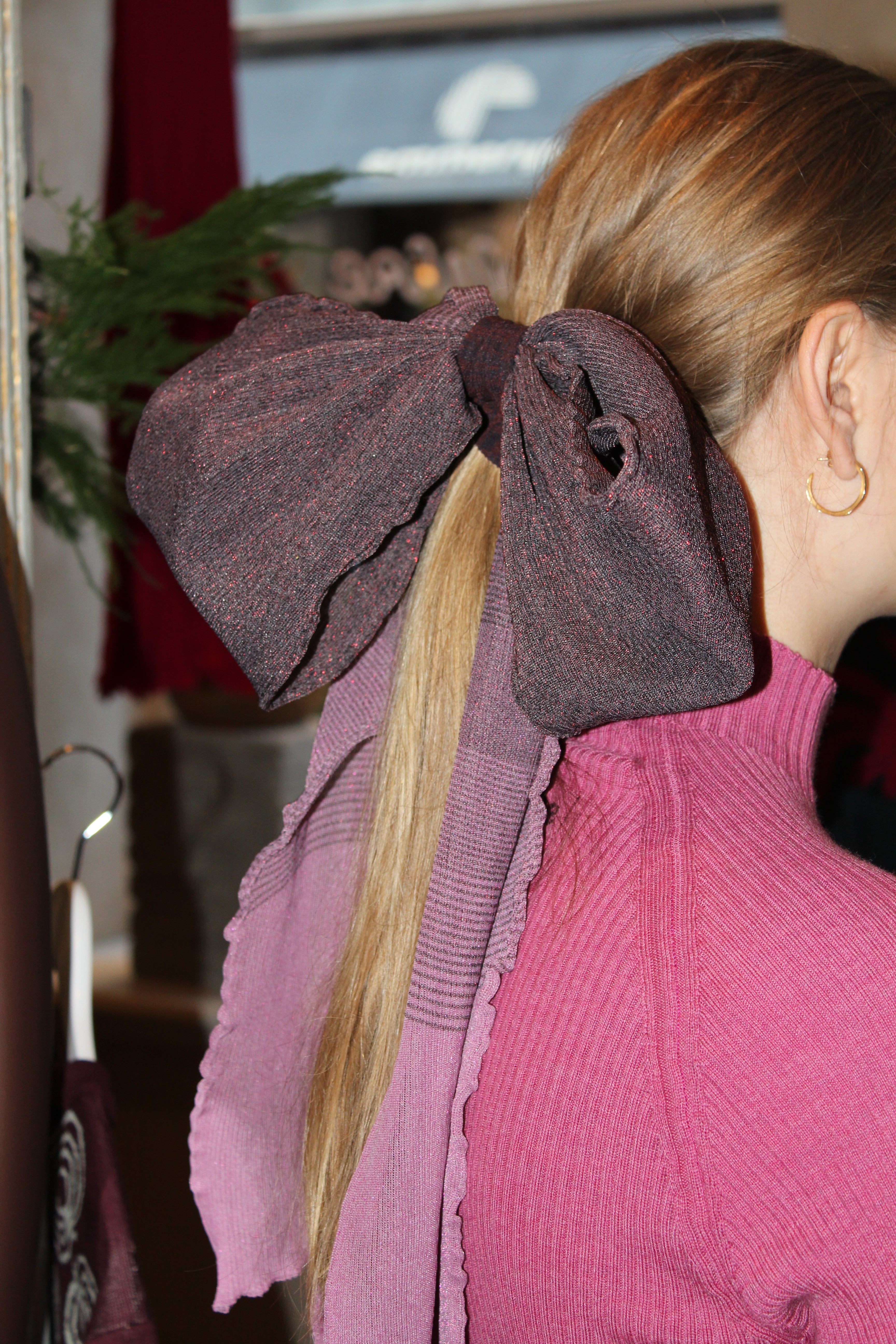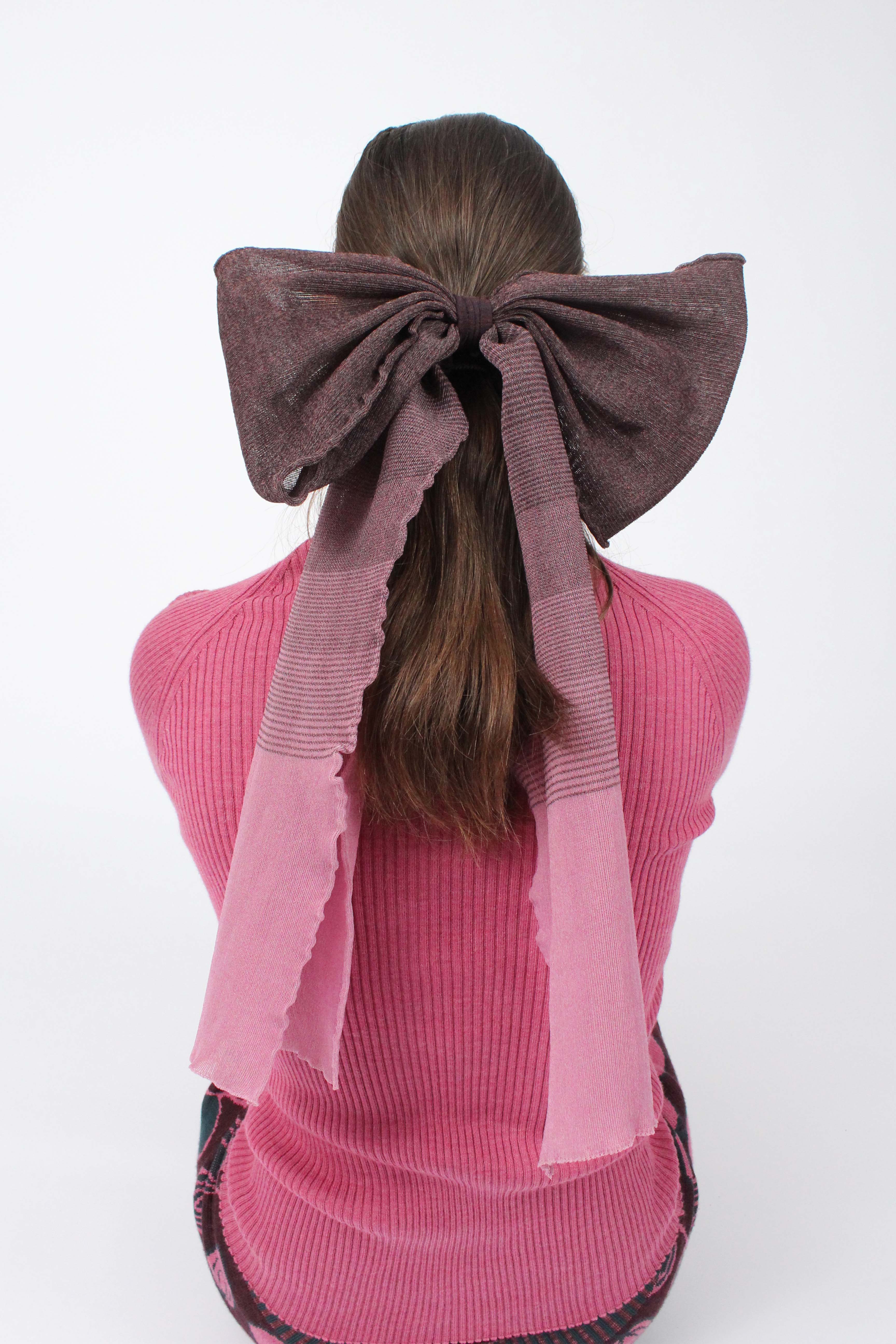 The Gradient Grand Bow is a playful statement accessory designed to transform any look. Made in a lightweight sheer textile, it features oversized proportions with soft frilled edges, creating a dramatic yet elegant silhouette. Designed with versatility in mind, the bow is attached through a knitted elastic strap featuring the Nadia Wire logo. This allows the bow to be styled in multiple ways either in your hair or around the neck. Whether for a casual day outfit or a dressed-up evening look, the Grand Bow adds a touch of whimsical sophistication.