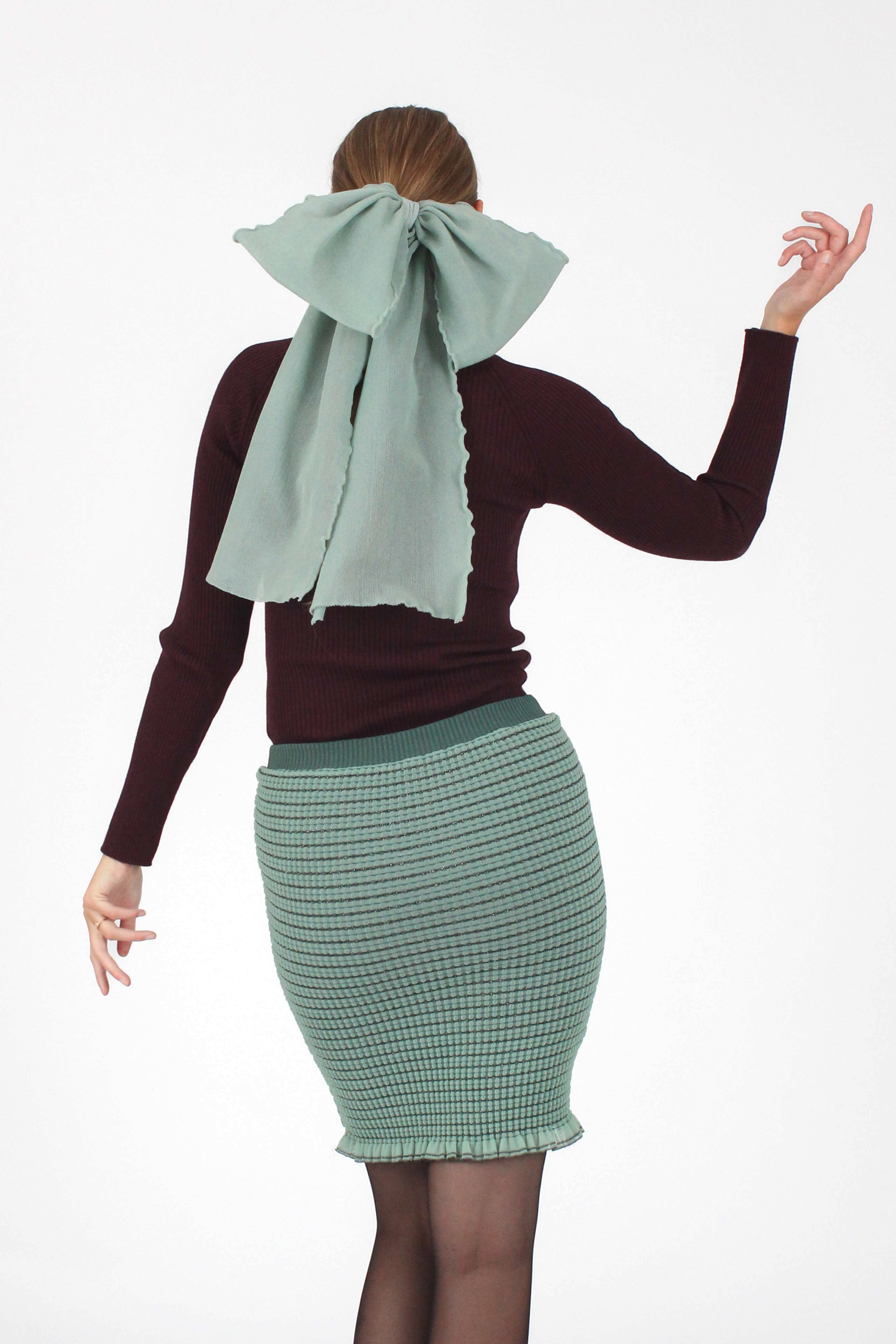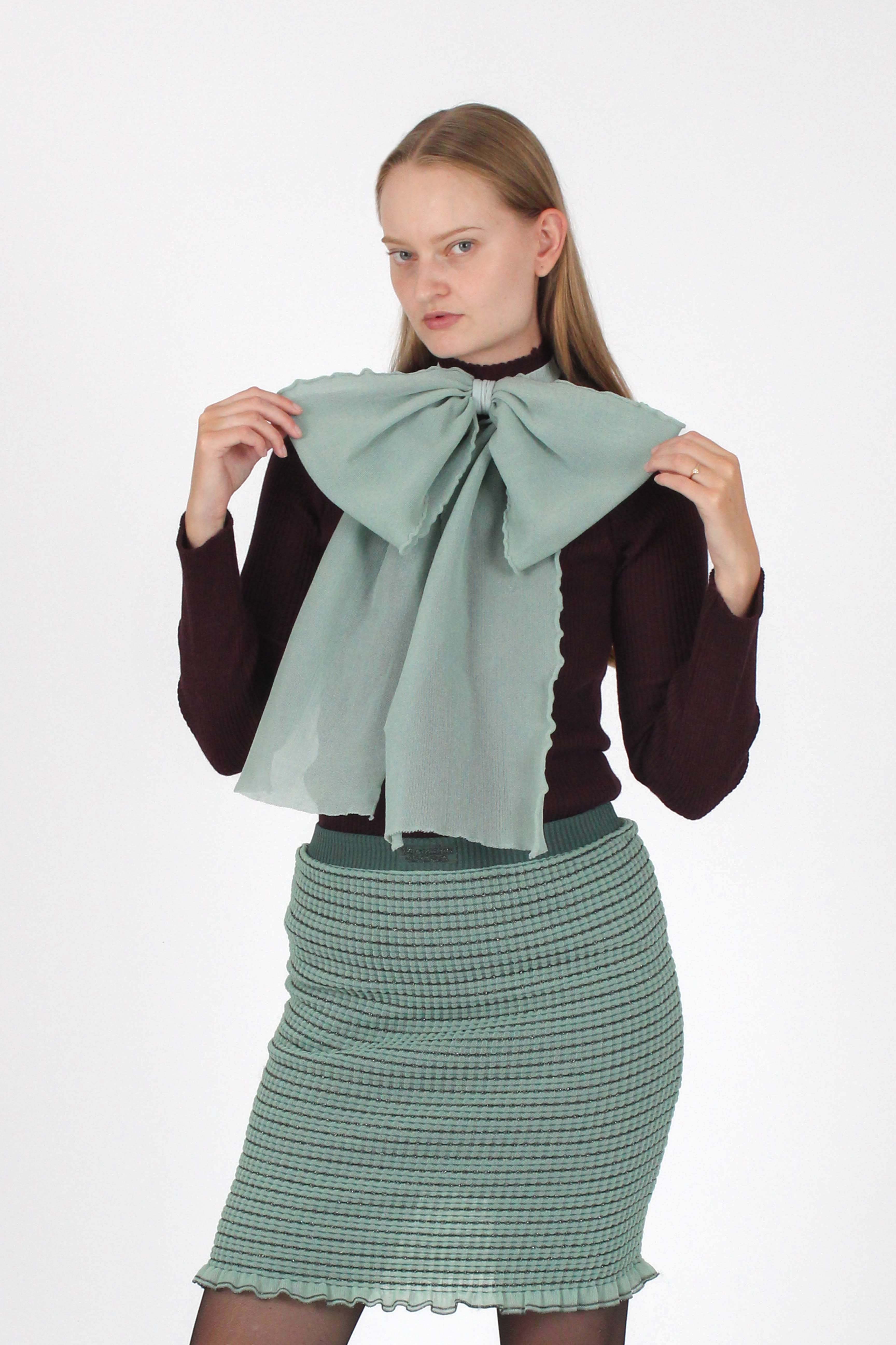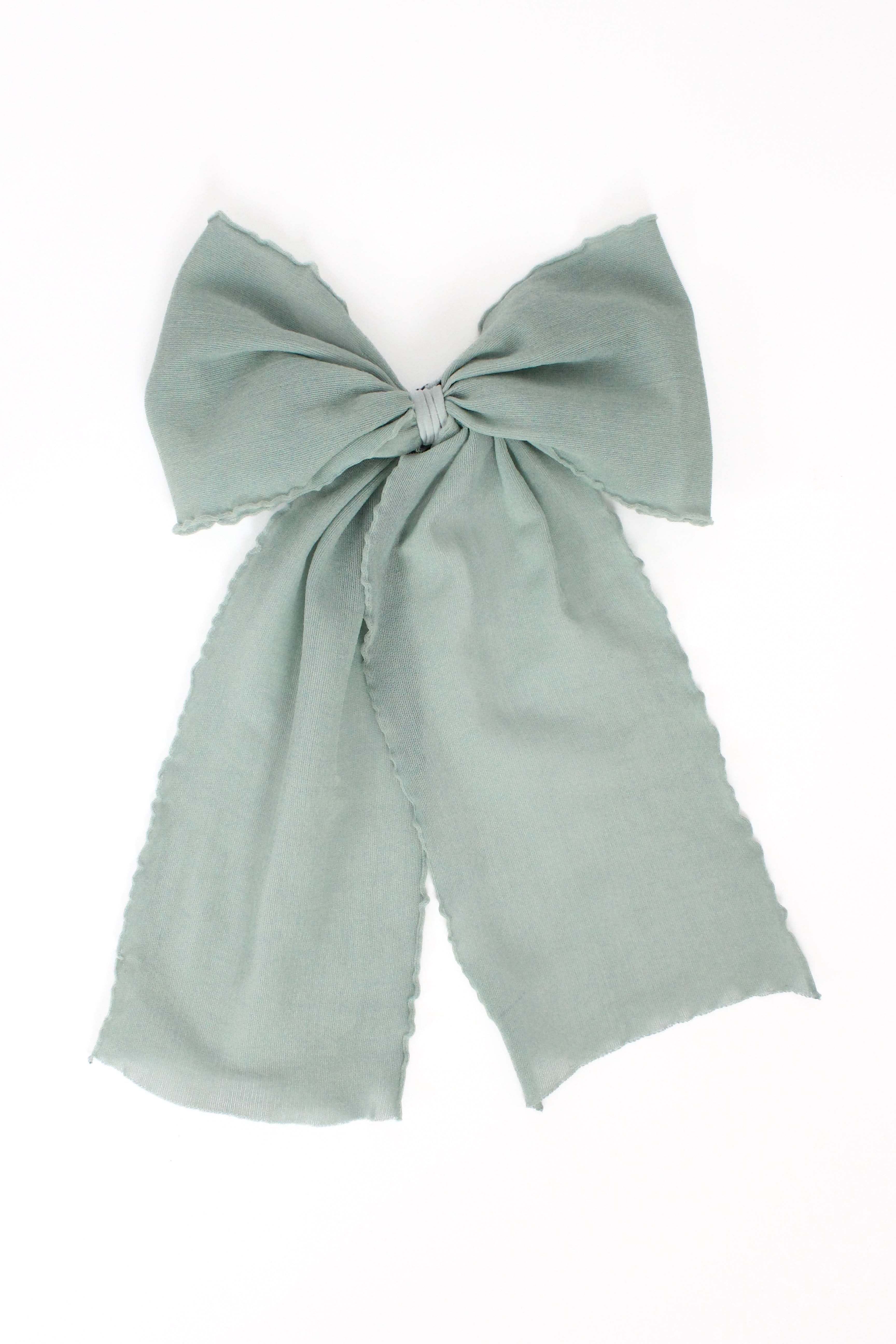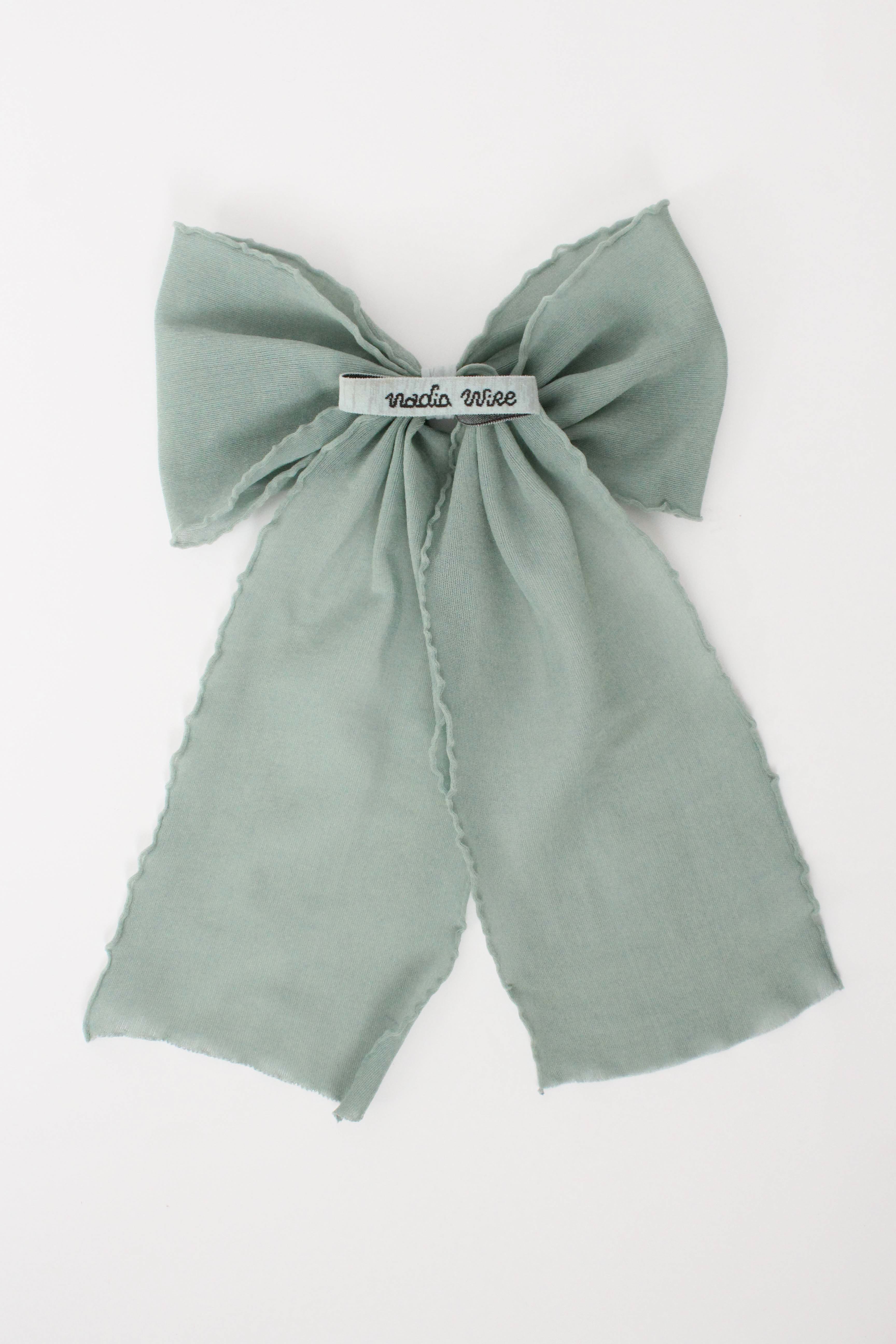 The Grand Bow is a playful statement accessory designed to transform any look. Made in a lightweight sheer textile, it features oversized proportions with soft frilled edges, creating a dramatic yet elegant silhouette. Designed with versatility in mind, the bow is attached through a knitted elastic strap featuring the Nadia Wire logo. This allows the bow to be styled in multiple ways either in your hair or around the neck. Whether for a casual day outfit or a dressed-up evening look, the Grand Bow adds a touch of whimsical sophistication.