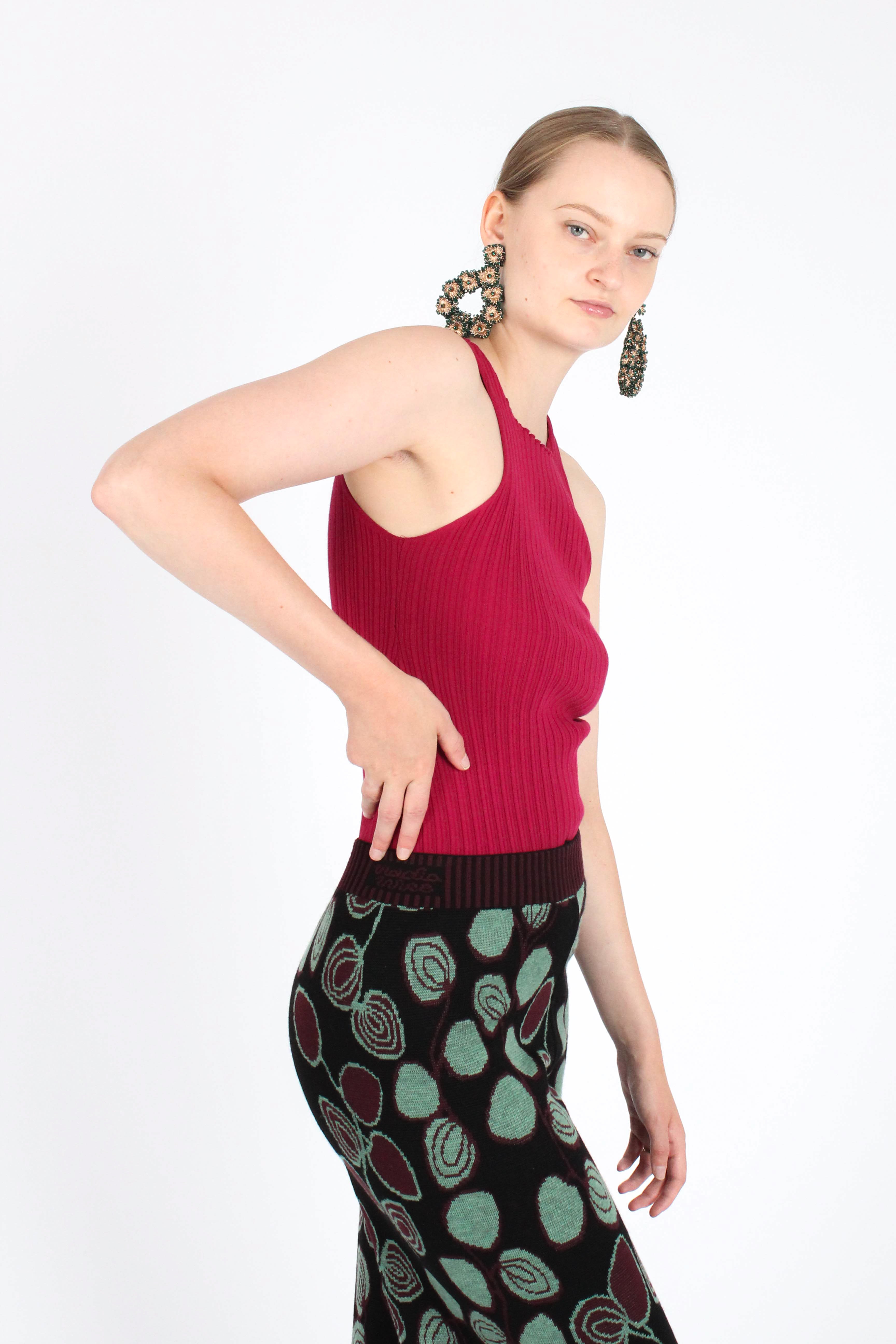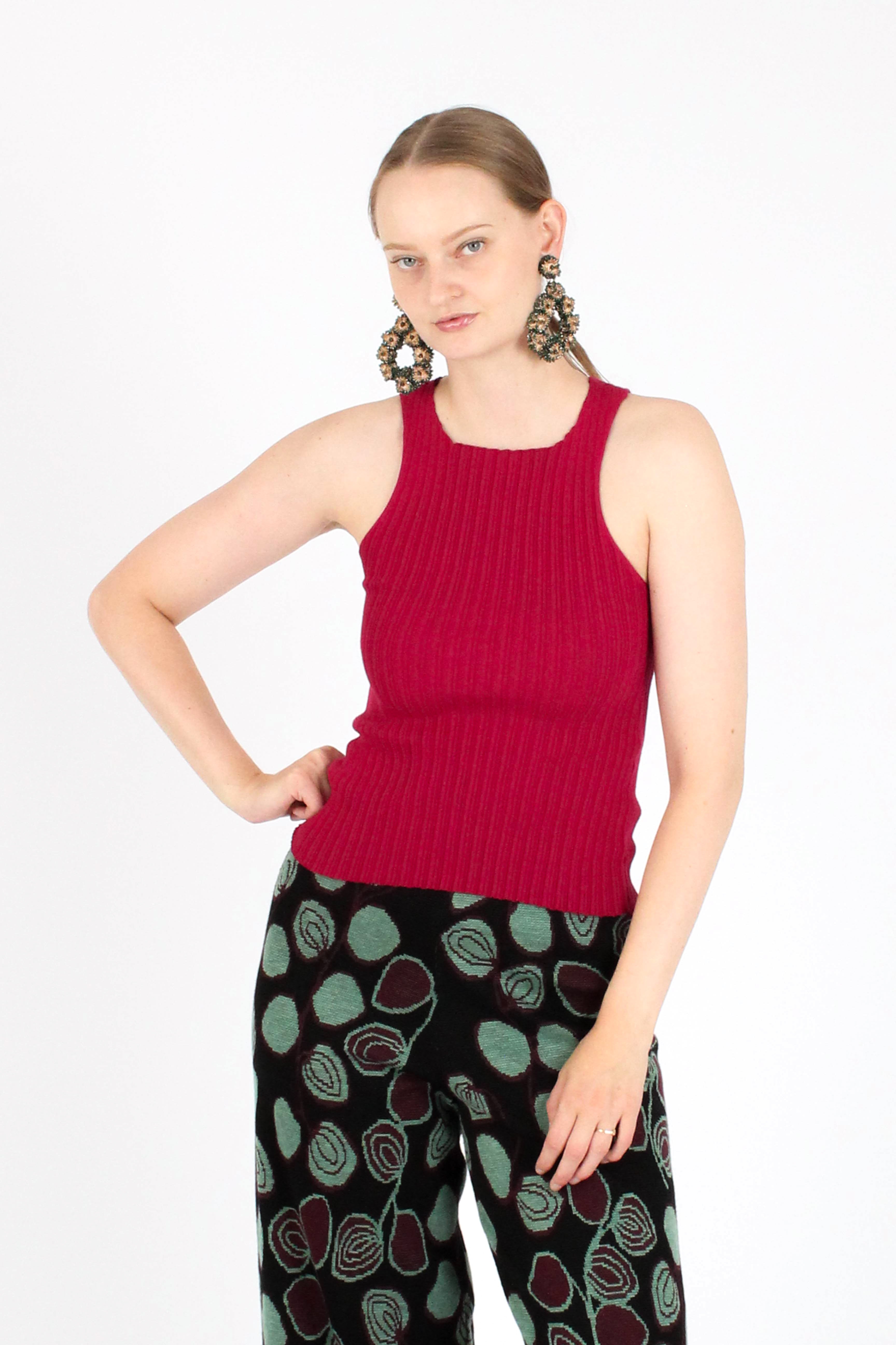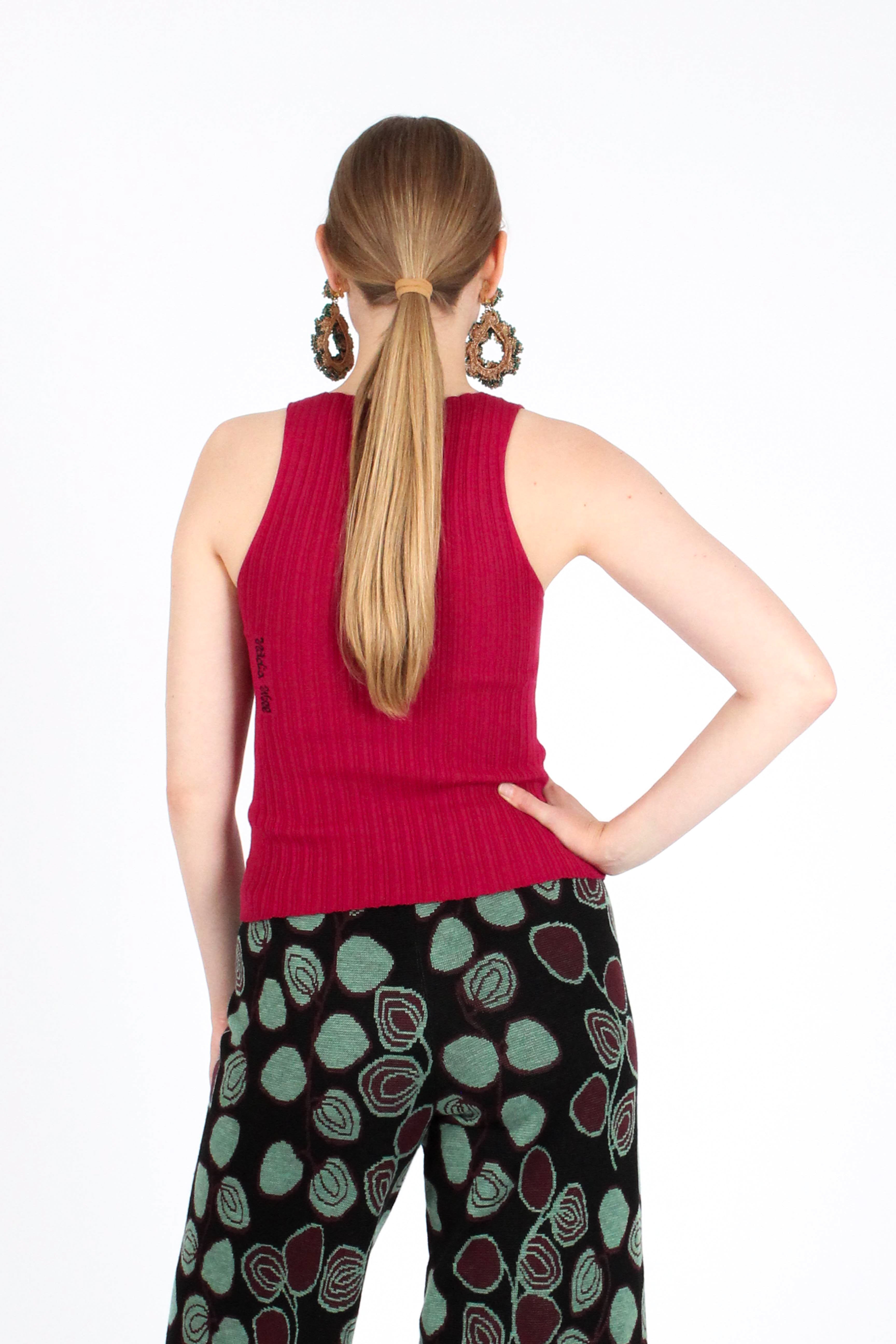 A timeless Nadia Wire essential with a modern edge. The Rib Tank Top is knitted in eco-friendly cotton, offering a soft, breathable feel that works seamlessly across seasons. Its fitted silhouette with a round neckline makes it a versatile layering piece or a bold stand-alone top. Designed in a striking pink color, this ribbed texture adds both comfort and structure, creating a flattering fit that moves with you. Wear it solo on warm days, or layer it over or under other knits for transitional styling.