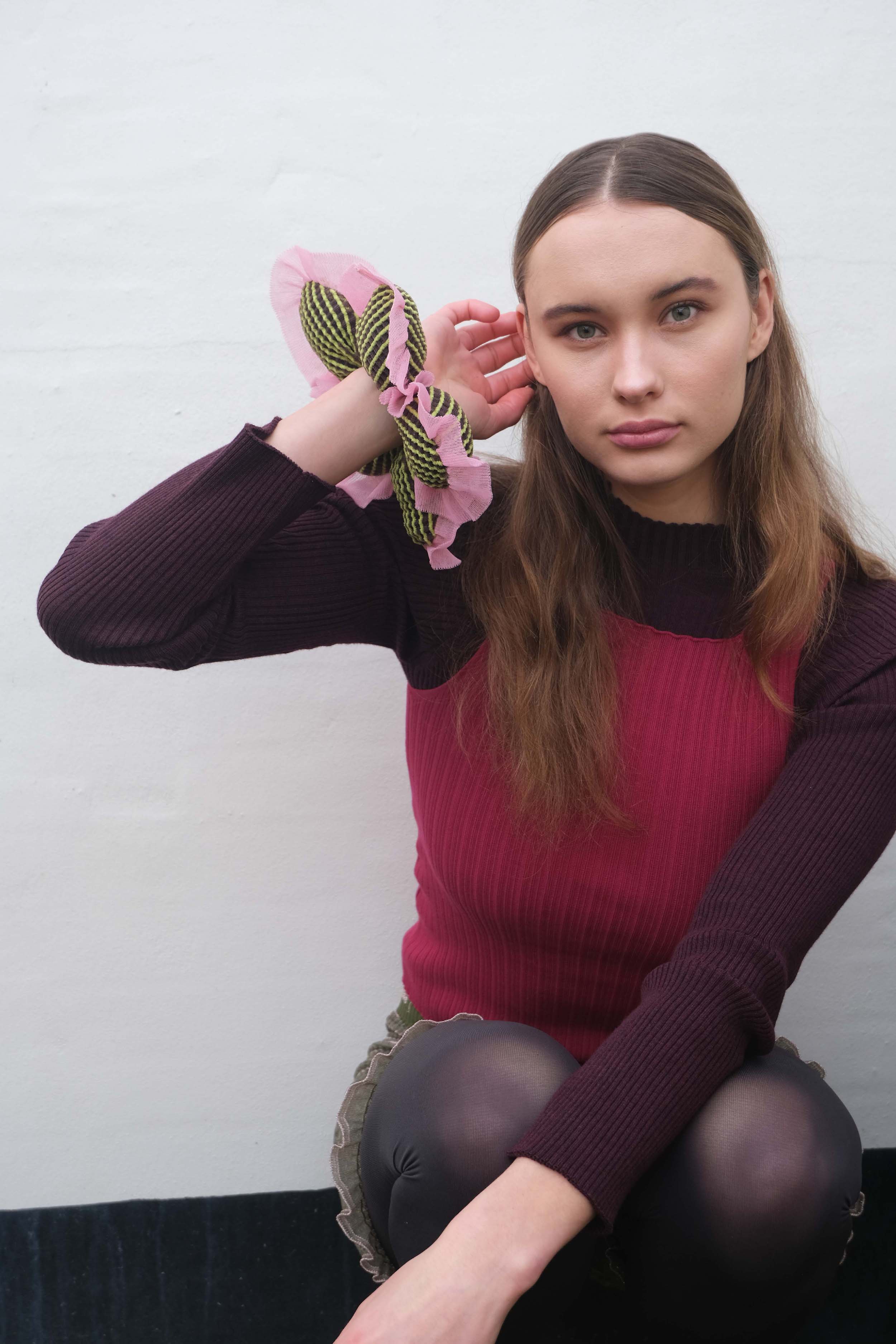 Fully Fashioned means that we shape our fabrics directly on the knitting machine. We create technical knitting programs for each shape and size, so we don’t need to cut into fabrics, when assembling the knits. We avoid creating any unnecessary materials and we are therefore eliminating a lot of fabric, that would otherwise be considered waste.